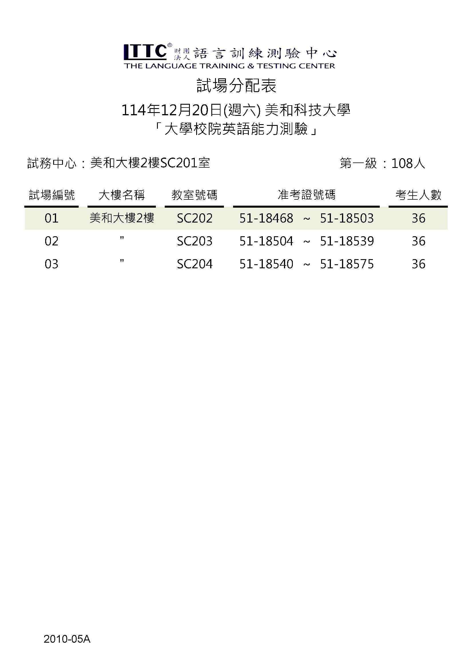 3. 測驗地點:美和科大南校區SC202~SC204教室